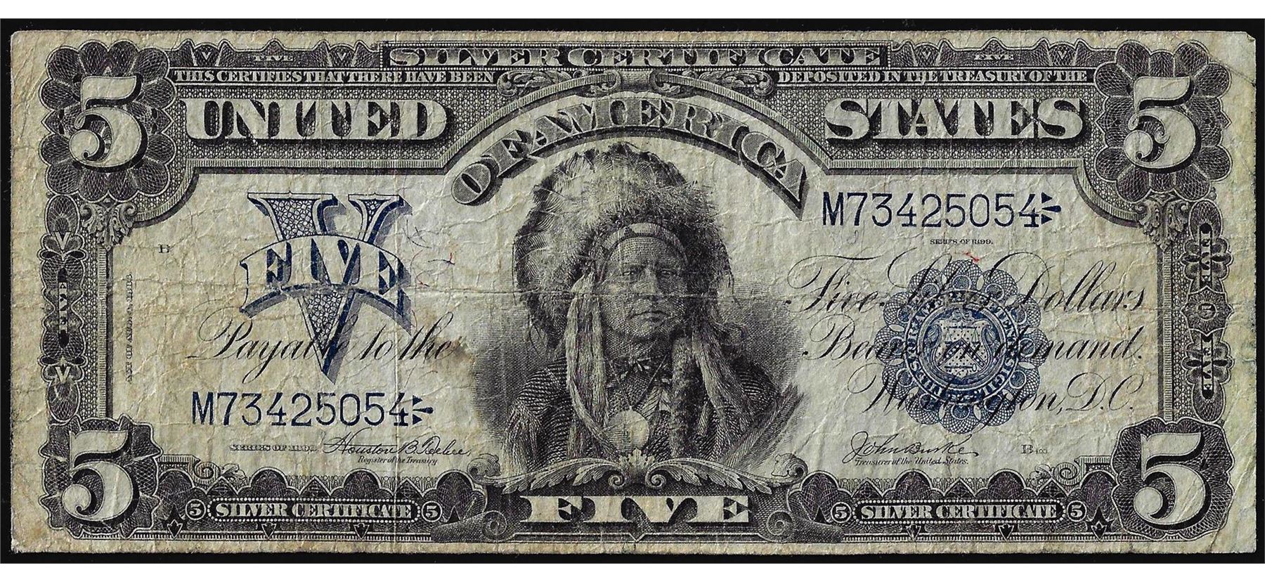 One 1899 $5 Indian Chief Silver Certificate Bank Note.
