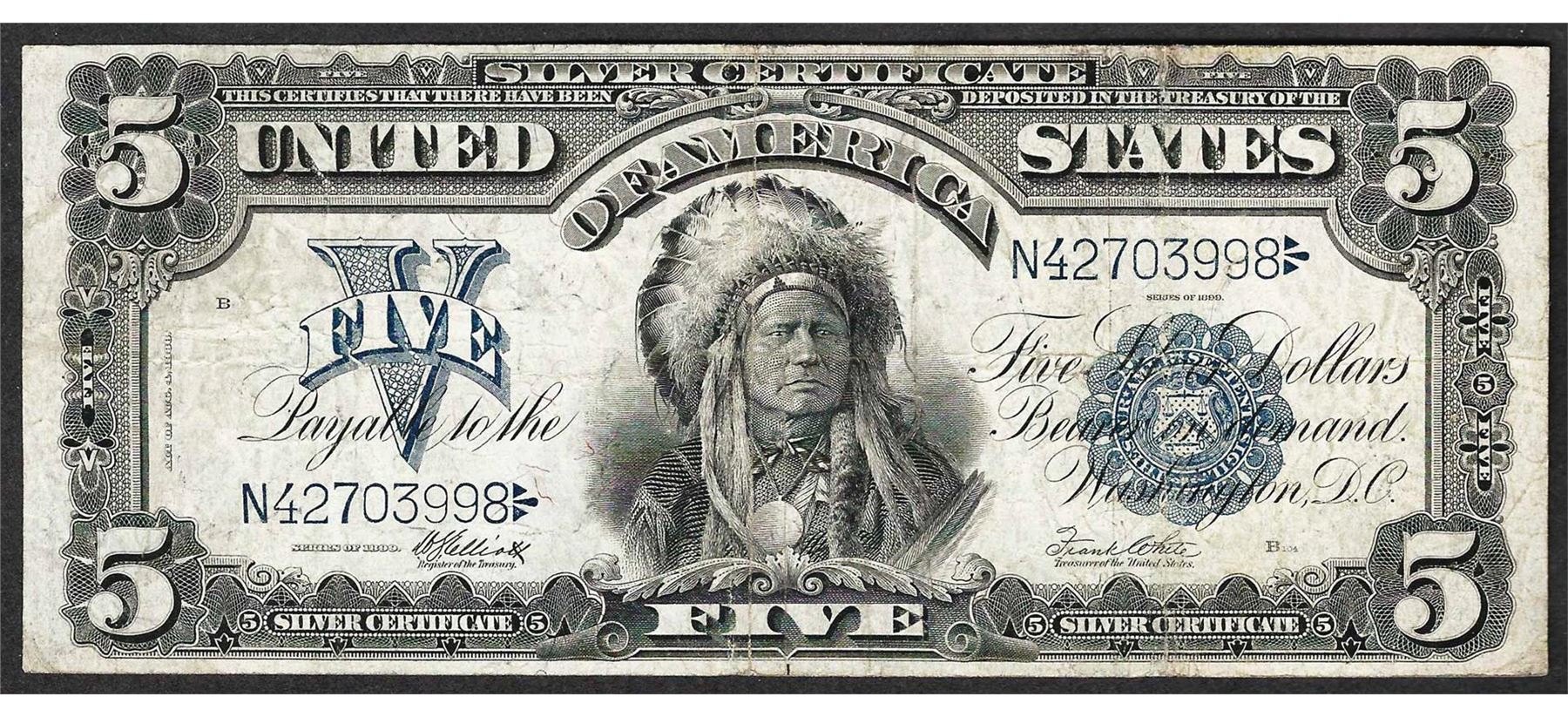 One 1899 $5 Indian Chief Silver Certificate Note.
