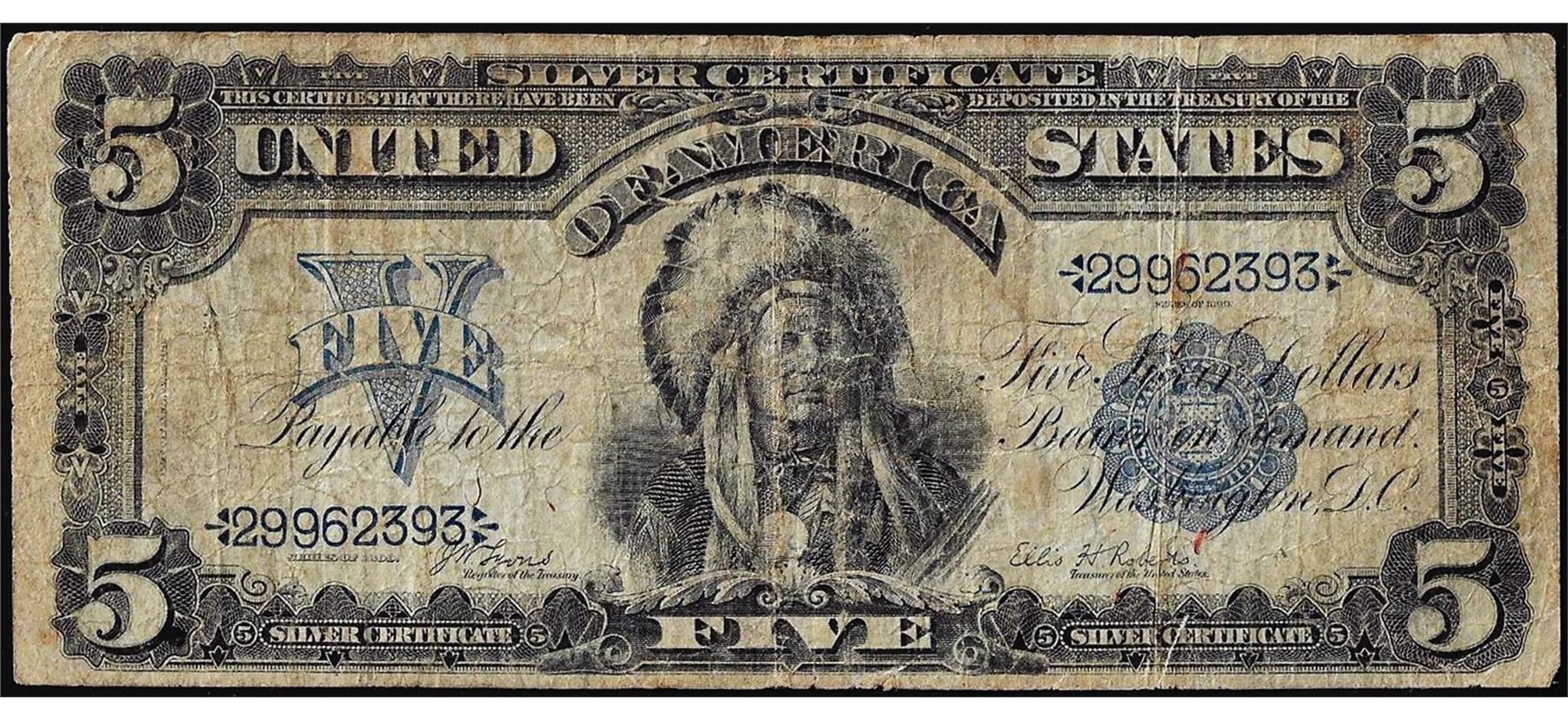 One 1899 $5 Indian Chief Silver Certificate Note.