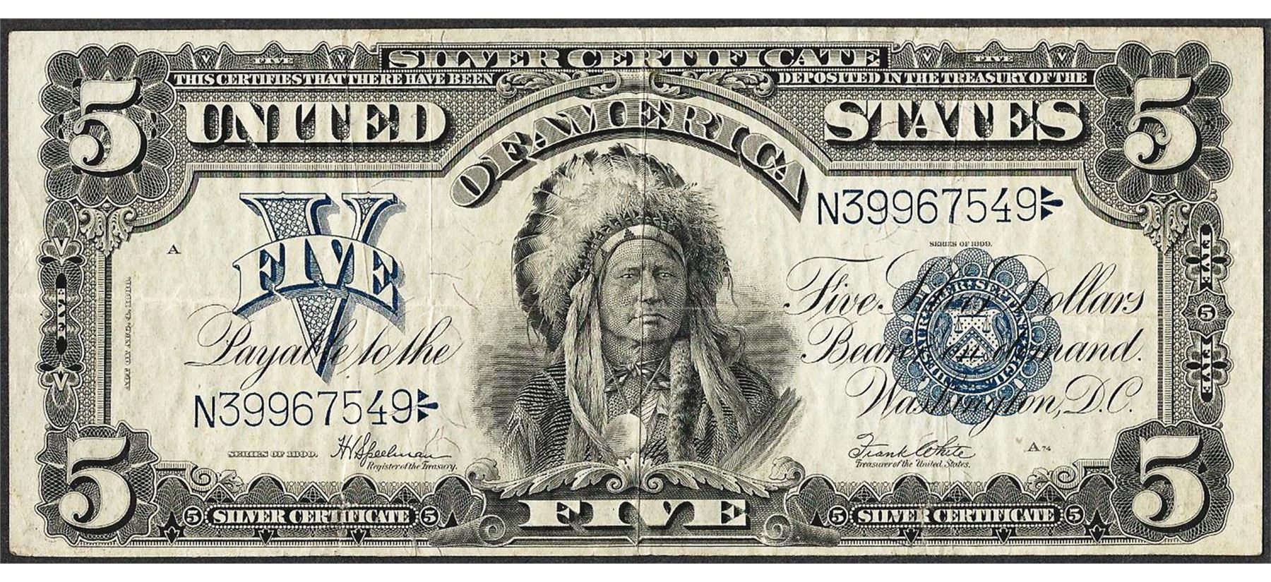 One 1899 $5 Indian Chief Silver Certificate Note.