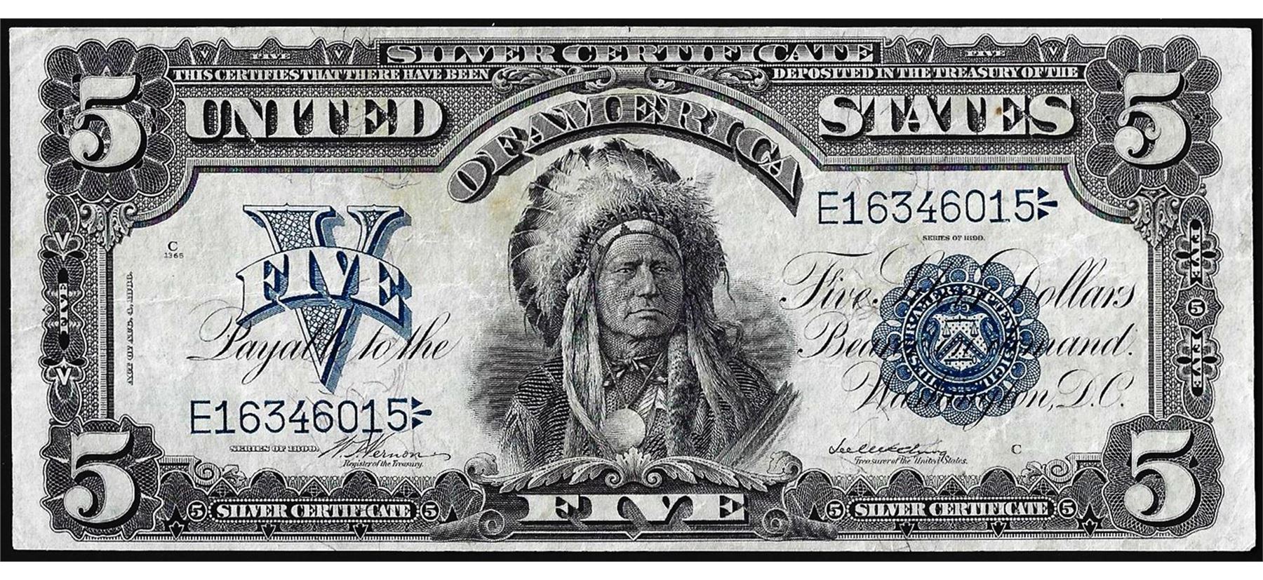 One 1899 $5 Indian Chief Silver Certificate Note.