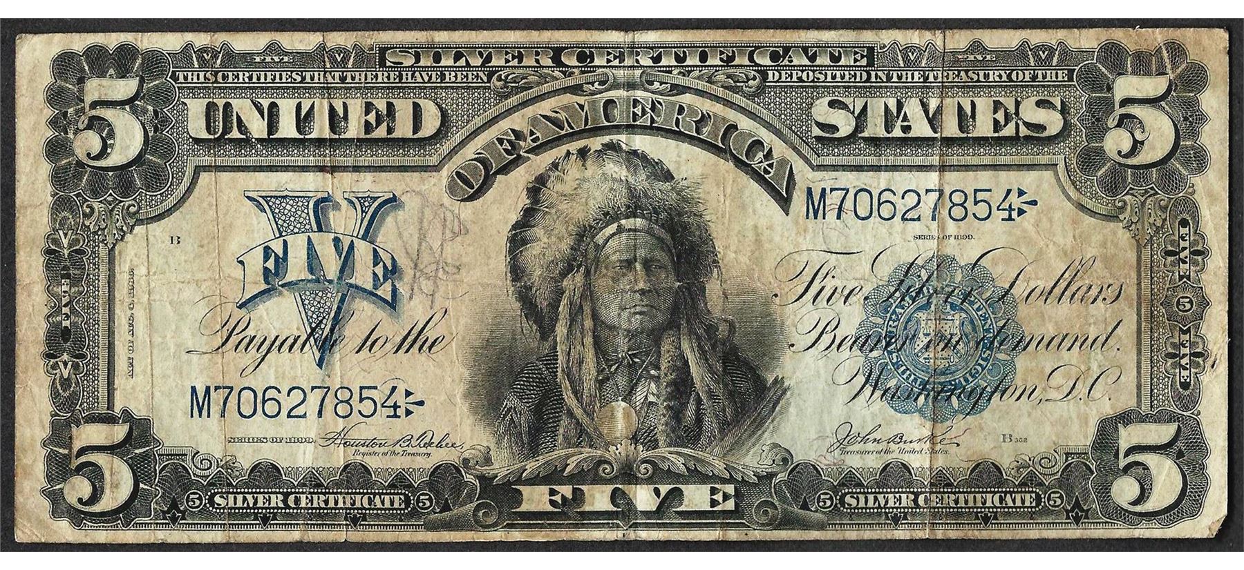 One 1899 $5 Indian Chief Silver Certificate Note.