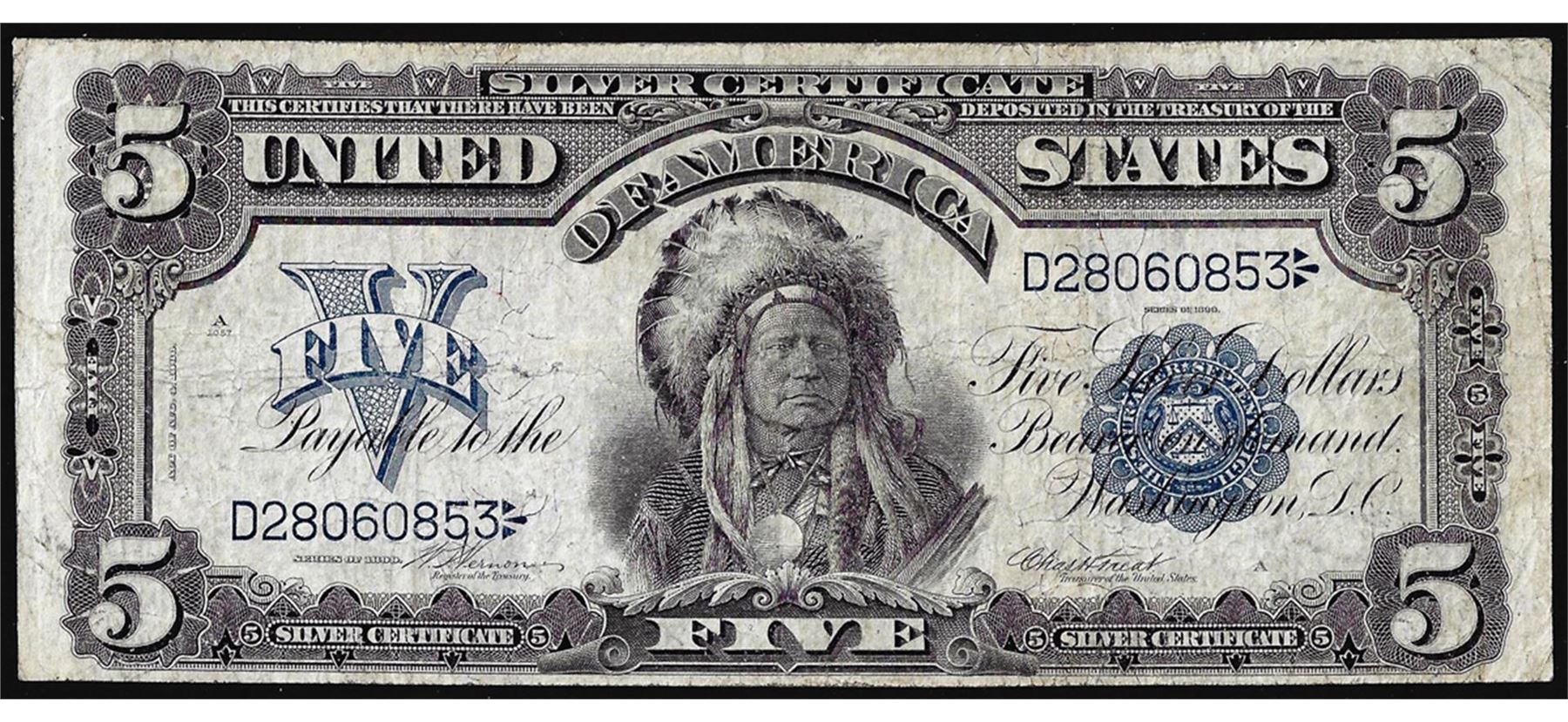 One 1899 $5 Indian Chief Silver Certificate Note.