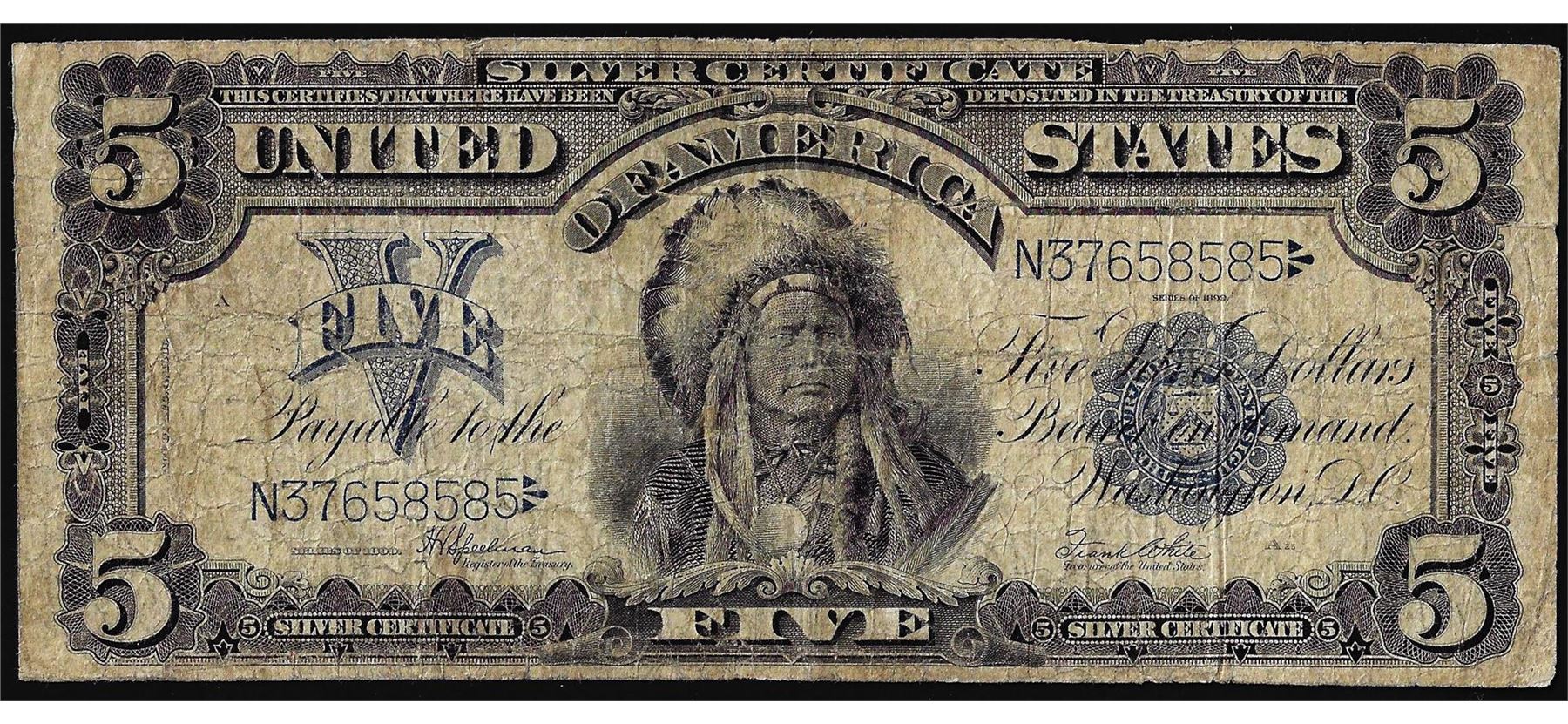 One 1899 $5 Indian Chief Silver Certificate Note.