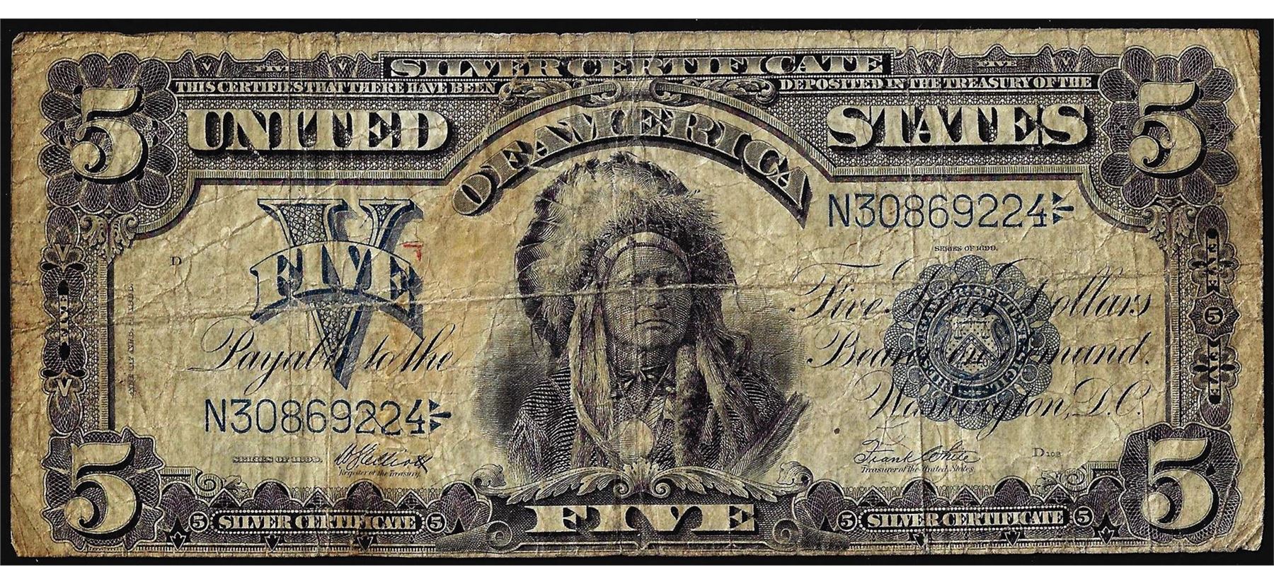 One 1899 $5 Indian Chief Silver Certificate Note.