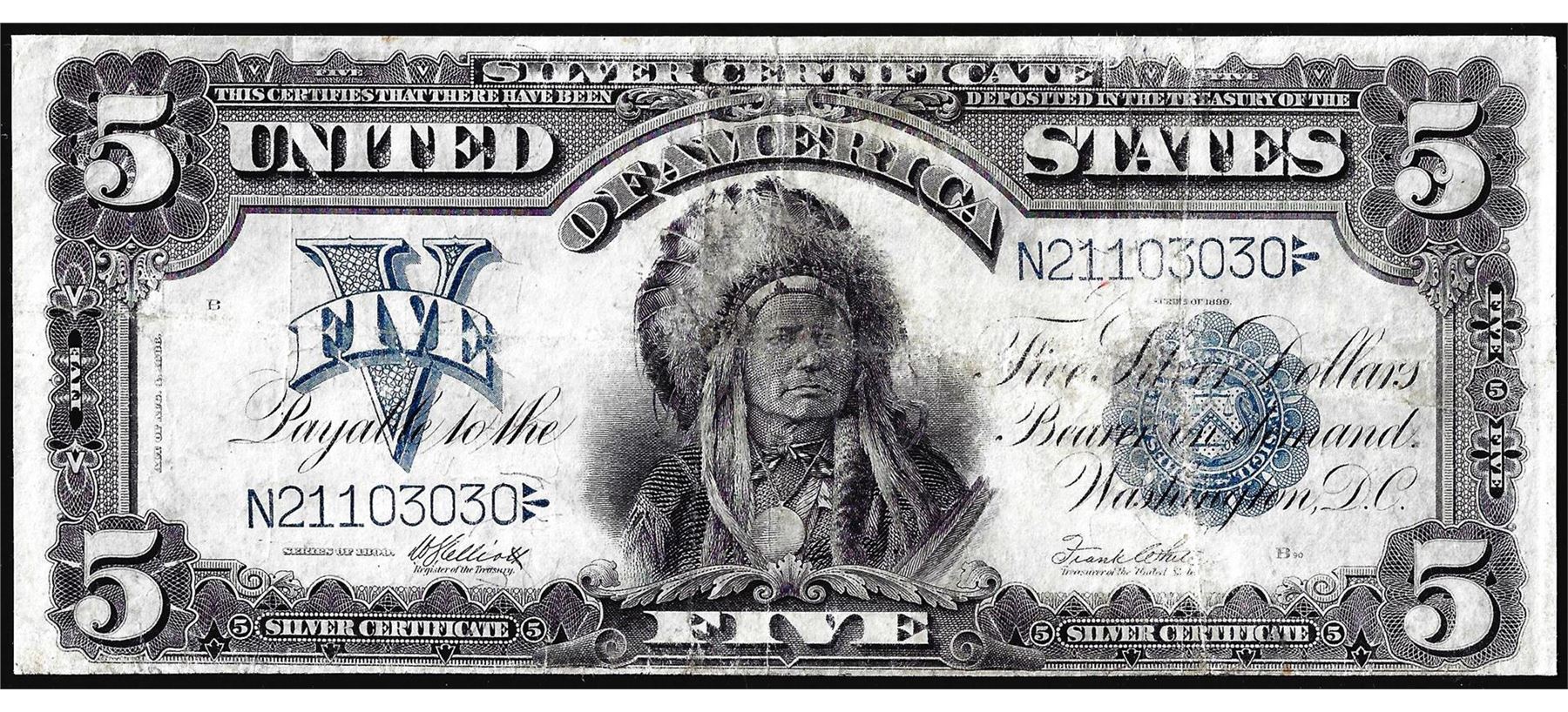 One 1899 $5 Indian Chief Silver Certificate Note.