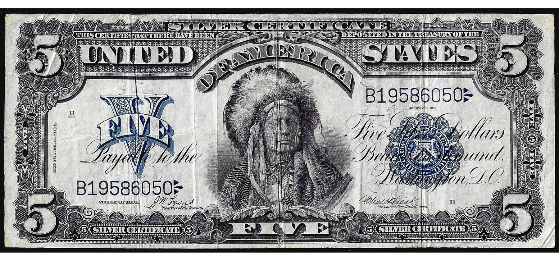 One 1899 $5 Indian Chief Silver Certificate Note.