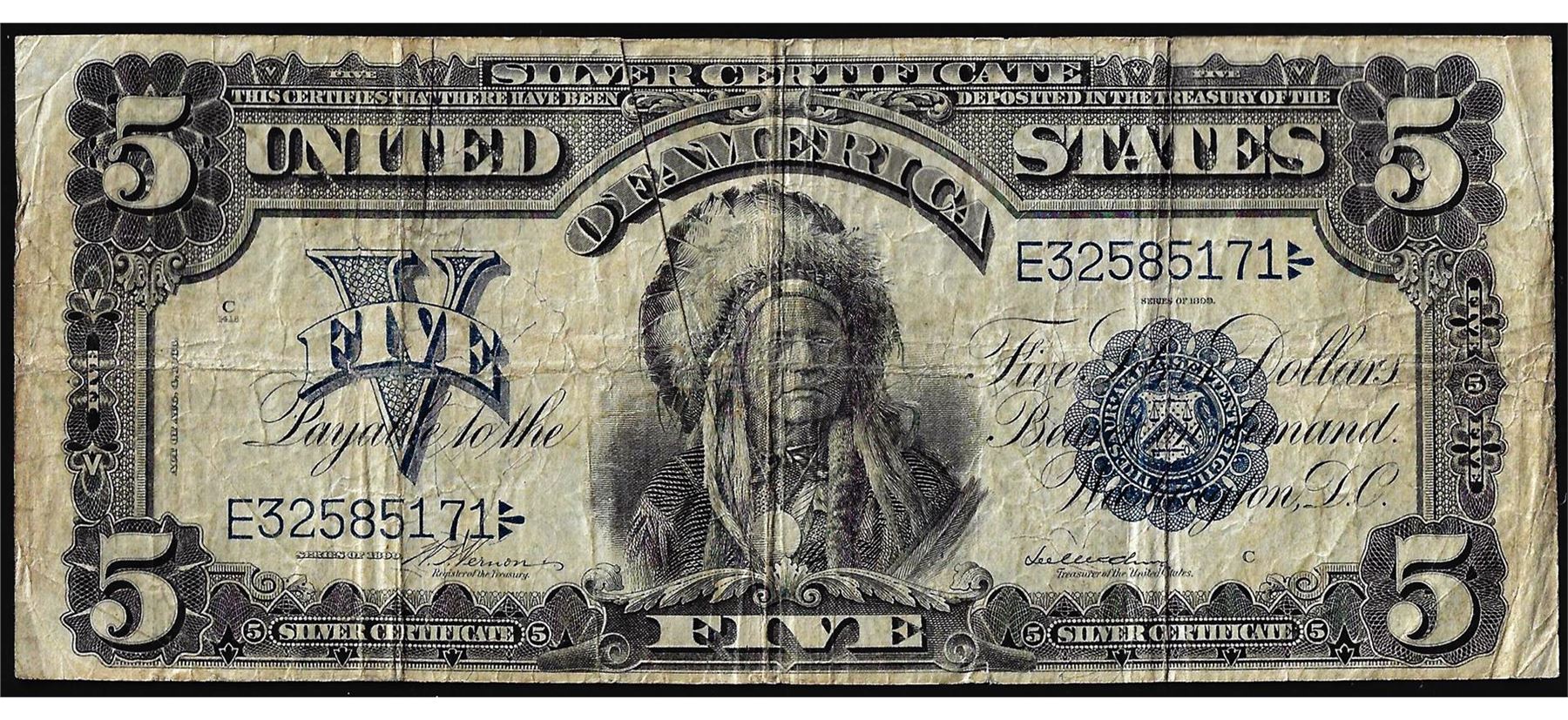 One 1899 $5 Indian Chief Silver Certificate Note.