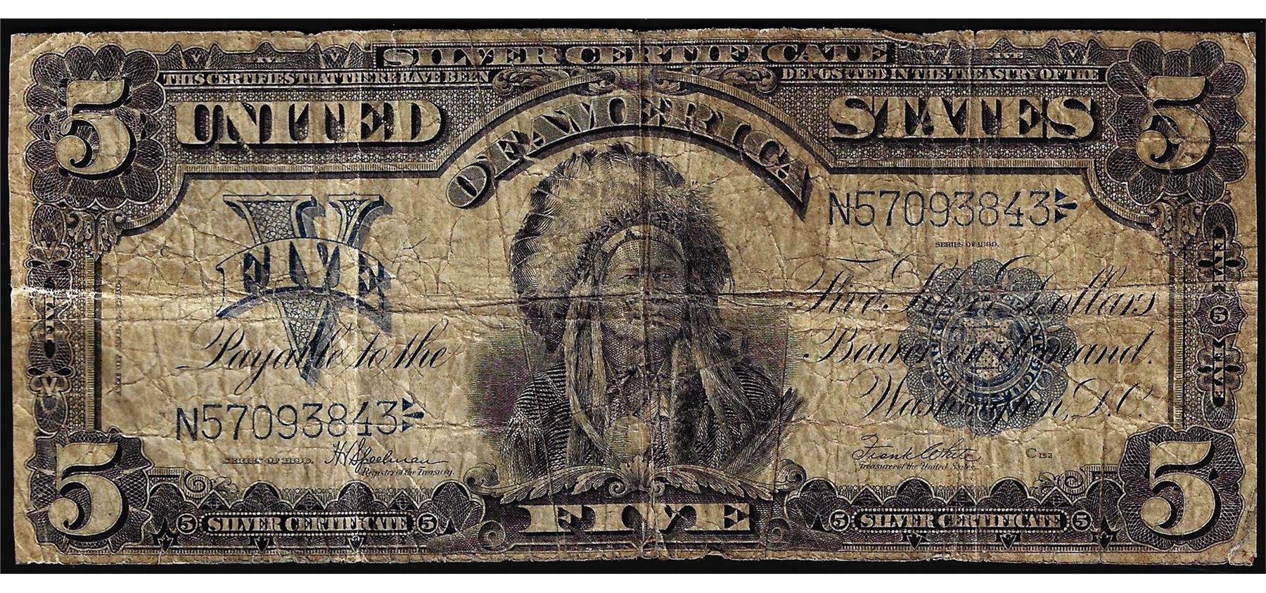 One 1899 $5 Indian Chief Silver Certificate Note.