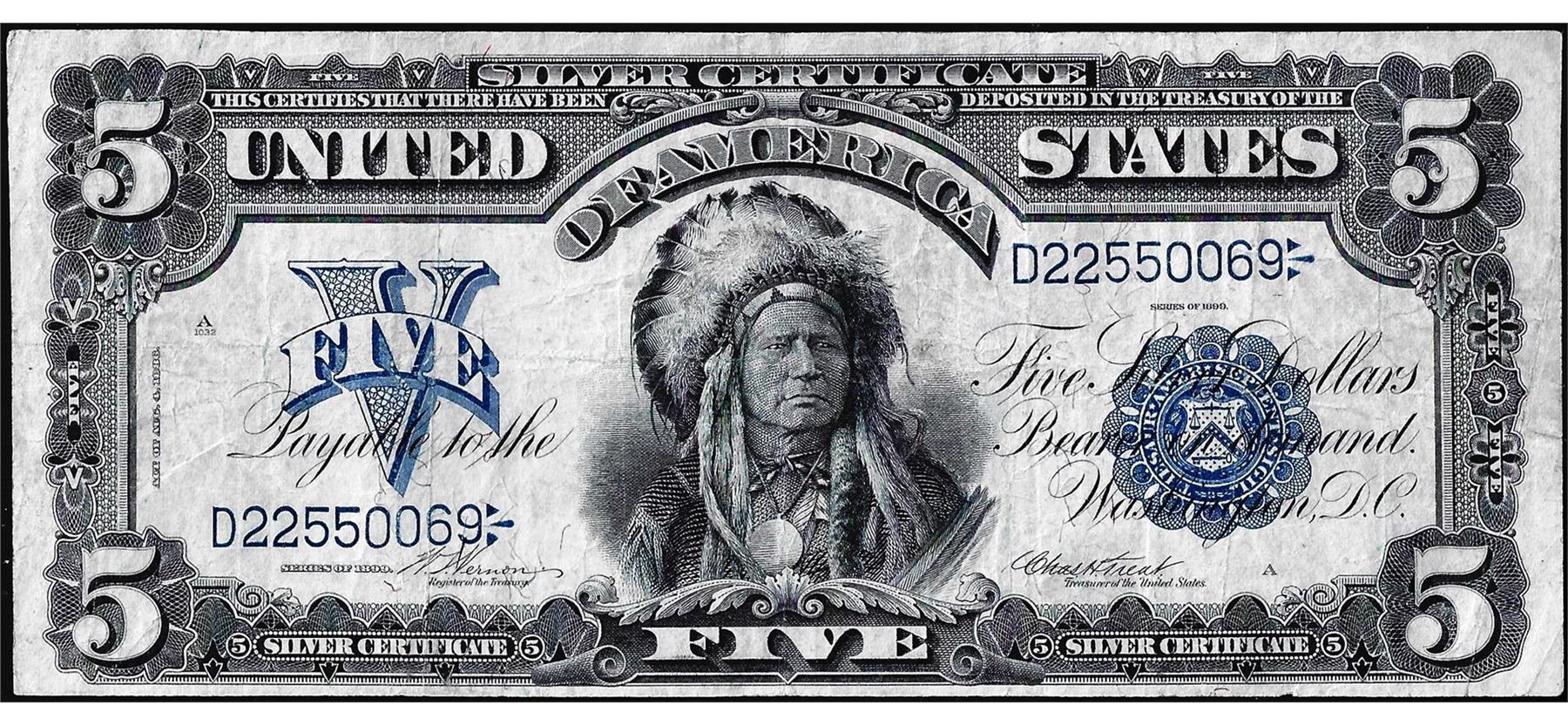 One 1899 $5 Indian Chief Silver Certificate Note.