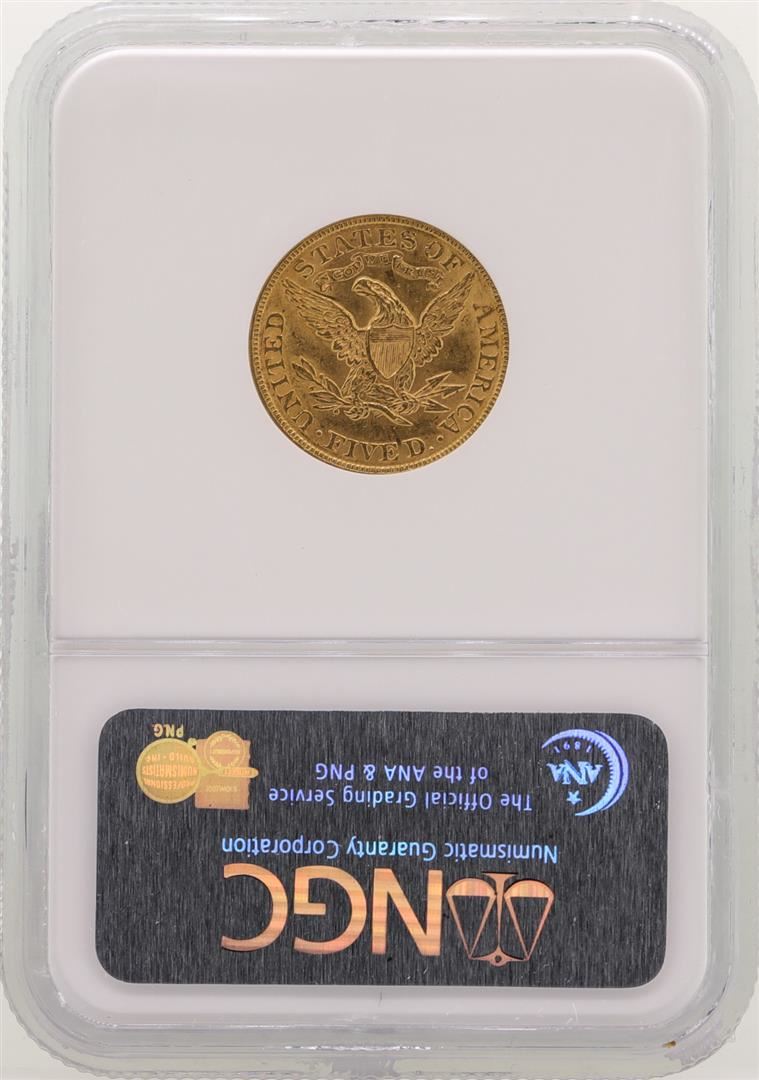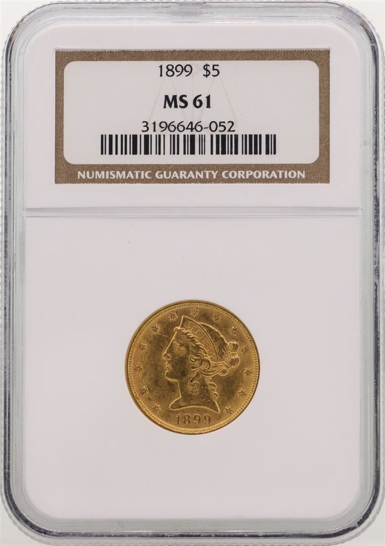 One 1899 $5 Liberty Head Half Eagle Gold Coin NGC MS61. NGC Certified.