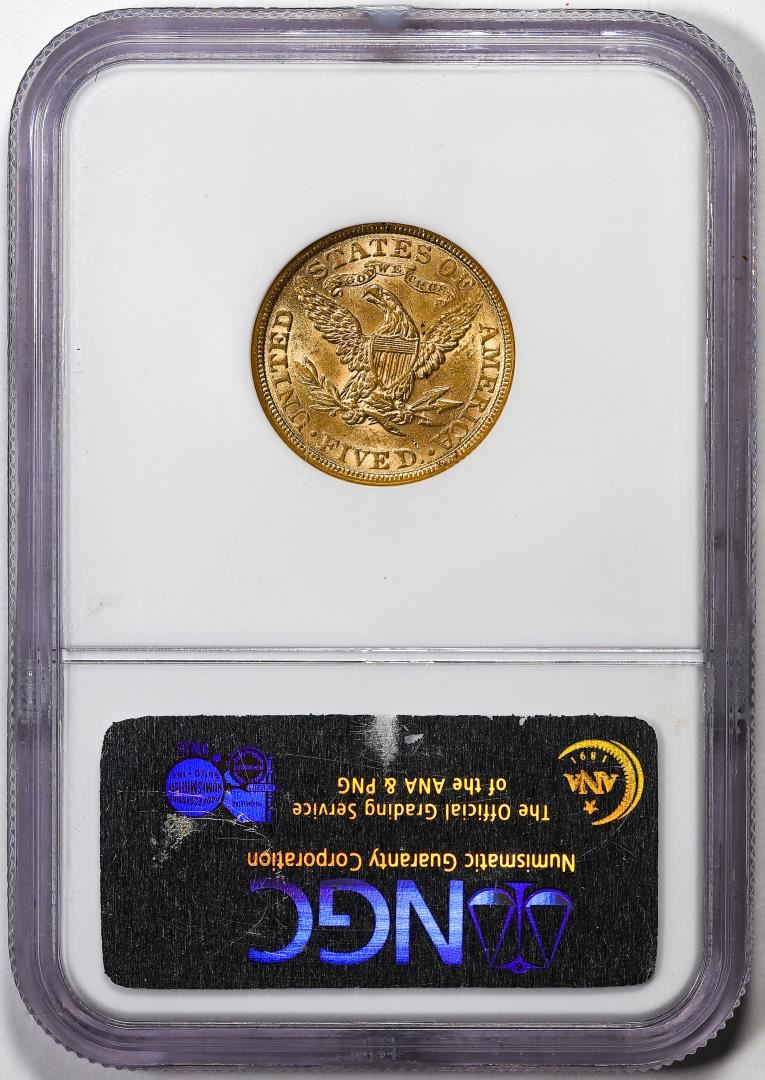 One 1899 $5 Liberty Head Half Eagle Gold Coin NGC MS61. NGC Certified.