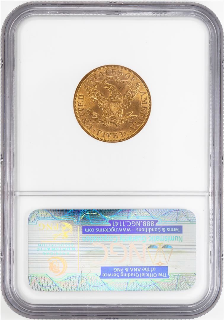 One 1899 $5 Liberty Head Half Eagle Gold Coin NGC MS62. NGC Certified.