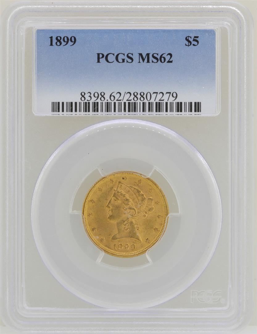 One 1899 $5 Liberty Head Half Eagle Gold Coin PCGS MS62. PCGS Certified.