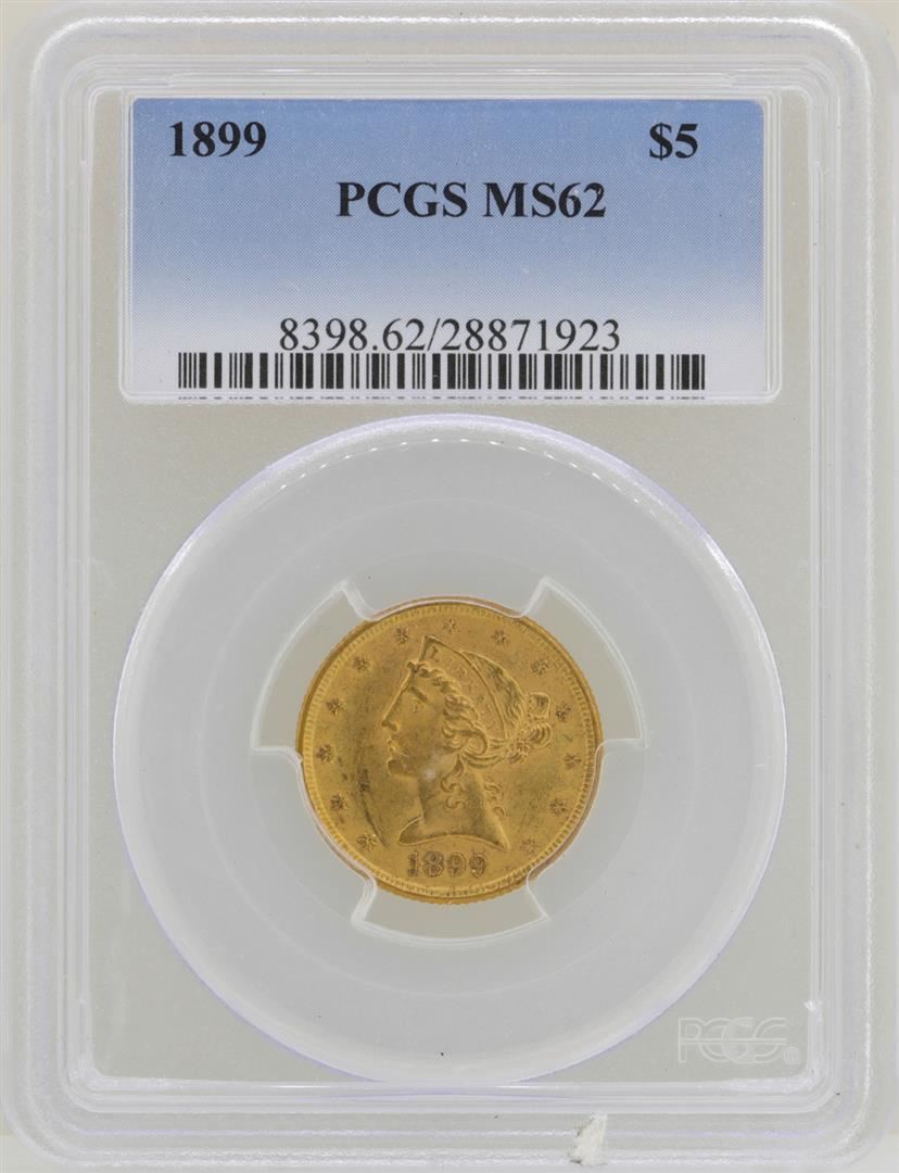 One 1899 $5 Liberty Head Half Eagle Gold Coin PCGS MS62. PCGS Graded.