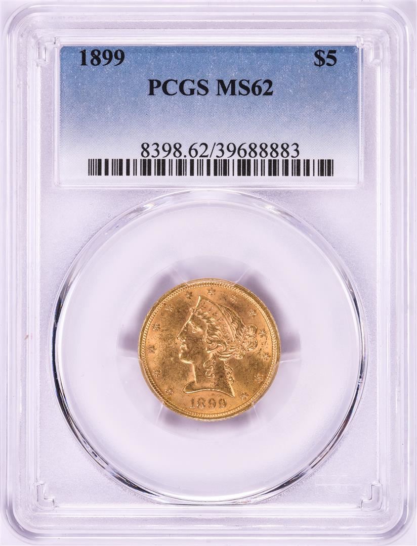 One 1899 $5 Liberty Head Half Eagle Gold Coin PCGS MS62. PCGS Graded.