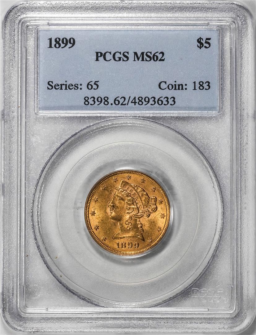 One 1899 $5 Liberty Head Half Eagle Gold Coin PCGS MS62. PCGS Graded.