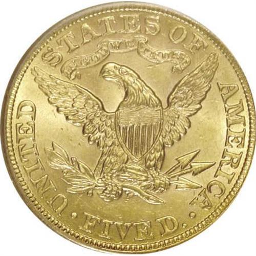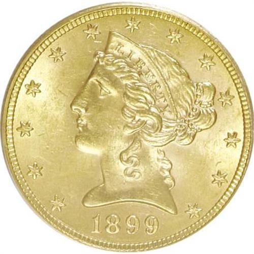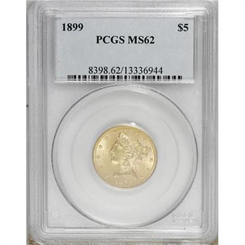 <B>1899 $5 MS62 PCGS.</B></I> PCGS Population (1595/1726). NGC Census: (2764/4563). Mintage: 1,710,729. Numismedia Wsl. Price for NGC/PCGS coin in MS62: $310. (#8398)<BR><BR><B>Coin Engraver:</B> Christian Gobrecht<BR><BR><b>Shipping:</b> Coins & Currency (<a target="_blank" href="http://www.heritageauctions.com/common/shipping.php">view shipping information</a>)