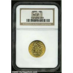<TABLE cellSpacing=0 cellPadding=0 width="100%" bgColor=#000000 border=0><TBODY><TR><TD width="100%"><TABLE cellSpacing=1 cellPadding=3 width="100%" border=0><TBODY><TR><TD width="100%" bgColor=#79735c><FONT face=arial color=#ffffff size=3><B>Description</B> </FONT></TD></TR><TR><TD width="100%" bgColor=#ffffff><FONT face=arial size=2><B>1899 $5 MS67 NGC.</B></I> Simply stated, this is a fantastic coin and the single finest 1899 Half eagle we have ever offered. The silky-smooth surfaces are devoid of even the most trivial distraction, and the luster is fully frosted and vibrant with swirling cartwheel effects. Razor sharp striking detail rounds out this coin's list of positive attributes. An exceedingly rare offering that is earmarked for inclusion in a Superb type collection. Population: 3 in 67, 0 finer (7/03). </FONT></TD></TR></TBODY></TABLE></TD></TR></TBODY></TABLE><BR><A name=PricesRealized></A><TABLE cellSpacing=0 cellPadding=0 width="100%" bgColor=#000000 border=0><TBODY><TR><TD width="100%"><TABLE cellSpacing=1 cellPadding=3 width="100%" border=0><TBODY><TR><TD width="100%" bgColor=#79735c><A name=PR><FONT face=arial color=#ffffff size=3><B>Previous Prices from Heritage Auctions</B> </FONT></A></TD></TR><TR><TD bgColor=#f6f6ed>No Prior Data Recorded </TD></TR><TR><TD bgColor=#ffffff><FONT face=arial size=1 ?>PLEASE NOTE: All prices realized reflect the final hammer price PLUS the buyer's premium in auctions that charge a buyer's premium. Each item has a notation at the top of the listing indicating whether that lot included a buyer's premium. Example: A item that sells with a final hammer price of $100 and a 20% buyer's premium will display with a price realized of $120. All information listed is intended to be as accurate as possible, but errors are possible. Please use this guide carefully and inform us of any inaccuracies. </FONT></TD></TR></TBODY></TABLE></TD></TR></TBODY></TABLE><BR><TABLE cellSpacing=0 cellPadding=0 width="100%" bgColor=#000000 border=0><TBODY><TR><TD width="100%"><TABLE cellSpacing=1 cellPadding=3 width="100%" border=0><TBODY><TR><TD width="100%" bgColor=#79735c colSpan=6><FONT face=arial color=#ffffff size=3><B>Price Guide*</B> </FONT></TD></TR><TR bgColor=#f6f6ed><TD align=middle><B>Grade</B> </TD><TD align=middle><B>Coin World<BR>(Trends)</B> </TD><TD align=middle><B>Numismedia<BR>Retail</B> </TD><TD align=middle><B>Numismedia<BR>Wholesale</B> </TD><TD align=middle><B>Coin<BR>Universe</B> </TD><TD align=middle><B>Heritage<BR>Value Index</B> </TD></TR><TR bgColor=#ffffff><TD align=middle>66</TD><TD align=right>---</TD><TD align=right>---</TD><TD align=right>$4,850.00</TD><TD align=right>$6,750.00</TD><TD align=right>$4,994.17</TD></TR><TR style="FONT-WEIGHT: bold" bgColor=#cccfdd><TD align=middle>67</TD><TD align=right>---</TD><TD align=right>---</TD><TD align=right>---</TD><TD align=right>---</TD><TD align=right>$9,900.00</TD></TR><TR bgColor=#ffffff><TD align=middle>68</TD><TD align=right>---</TD><TD align=right>---</TD><TD align=right>---</TD><TD align=right>---</TD><TD align=right>---</TD></TR><TR bgColor=#ffffff><TD colSpan=6><FONT size=1>*All information listed is intended to be as accurate as possible, but errors are possible. No item may be returned or refused based on this information which is provided as a service to our customers. You should contact each pricing source directly to determine the accuracy of this information. </FONT></TD></TR></TBODY></TABLE></TD></TR></TBODY></TABLE><BR><TABLE cellSpacing=0 cellPadding=0 width="100%" bgColor=#000000 border=0><TBODY><TR><TD width="100%"><TABLE cellSpacing=1 cellPadding=3 width="100%" border=0><TBODY><TR><TD width="100%" bgColor=#79735c><FONT face=arial color=#ffffff size=3><B>Population Guide</B> </FONT></TD></TR><TR bgColor=#ffffff><TD align=middle><!-- Begin Output of Population Grid--><TABLE cellSpacing=0 cellPadding=0 width="100%" border=0><TBODY><TR><TD vAlign=center><TABLE cellSpacing=0 width="100%" border=1 cellsadding="3"><TBODY><TR><TD vAlign=center><TABLE cellSpacing=0 cellPadding=3 width="100%" border=1><TBODY><TR><TD vAlign=center align=middle bgColor=#f0f1e8 colSpan=2 <CENTER><FONT face=Arial size=2><B>PCGS Pop </B></FONT><CENTER></CENTER></TD><TD vAlign=center align=middle bgColor=#f0f1e8 colSpan=2><CENTER><FONT face=Arial size=2><B>NGC Pop</B></CENTER></FONT></TD></TR><TR><TD vAlign=center><FONT face=Arial size=2>(67)</FONT> </TD><TD vAlign=center align=right><FONT face=Arial size=2>0</FONT> </TD><TD vAlign=center><FONT face=Arial size=2>(67)</FONT> </TD><TD vAlign=center align=right><FONT face=Arial size=2>3</FONT> </TD></TR><TR><TD vAlign=center><FONT face=Arial size=2>(>67)</FONT> </TD><TD vAlign=center align=right><FONT face=Arial size=2>0</FONT> </TD><TD vAlign=center><FONT face=Arial size=2>(>67)</FONT> </TD><TD vAlign=center align=right><FONT face=Arial size=2>0</FONT> </TD></TR></TBODY></TABLE></TD></TR></TBODY></TABLE></TD></TR></TBODY></TABLE><!-- End Output of Population Grid--> Important notice: Heritage usually auctions material at the rate of 200-250 lots per hour. On some occasions eBay Live bid software or the Internet may not be able to keep up with the pace of the auction. We recommend placing a realistic absentee bid now as insurance to avoid disappointment. Occasionally the auctioneer may eliminate or reject an eBay Live bid, and the auctioneer may also reopen a lot after the close of the eBay live bidding (usually because we missed an audience bid), and may reject your bid even if it shows you as the winning bidder. By bidding via eBay Live, you agree that Heritage may award the lot to another bidder at its sole discretion under the circumstances described above or any other reasonable circumstances. Also please note that all Heritage lots purchased through eBay Live carry a 20% Buyer's Premium. Please make sure you read the Terms and Conditions before you bid.</TD></TR></TBODY></TABLE></TD></TR></TBODY></TABLE>