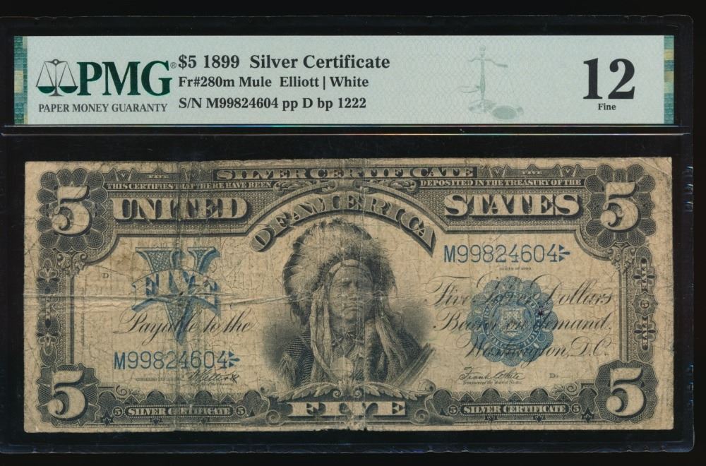 One 1899 $5 Mule Chief Silver Certificate PMG 12.