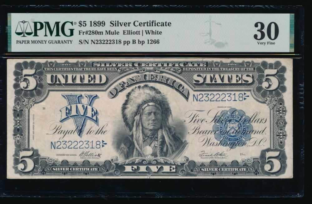 One 1899 $5 Mule Chief Silver Certificate PMG 30.