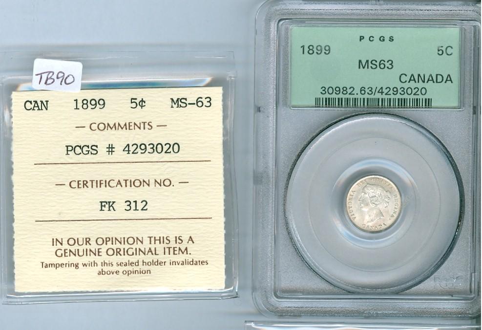 1899 5¢ PCGS/ICCS MS63. Frostlike finish, in old PCGS green holder.