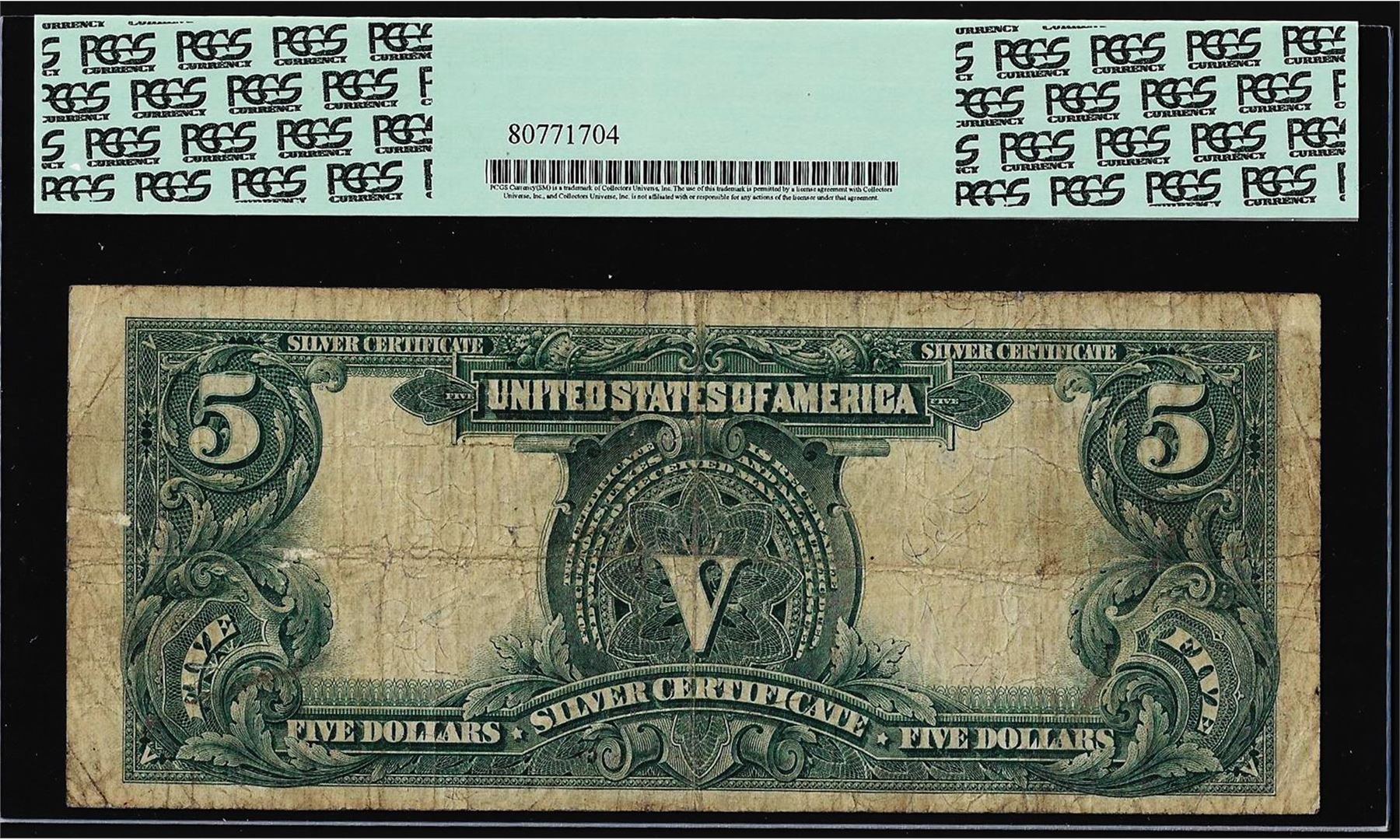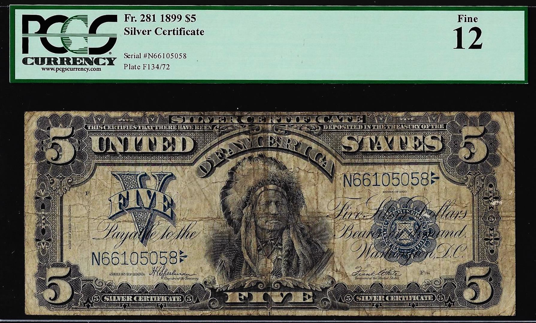 One 1899 $5 Silver Certificate Note Fr.281 PCGS Fine 12. PCGS Graded.