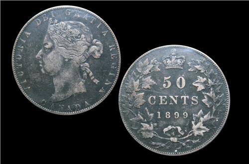 1899 50¢. Popular Victorian date. This example grades a conservative F15. Dark tone with no distracting problems.