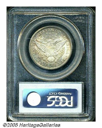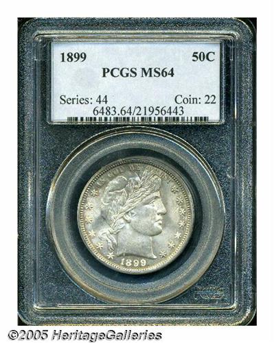 <B>1899<50C> MS64 PCGS.</B></I> Golden-brown, cobalt-blue, and lilac patina visit the borders. The design features are well brought up, and the surfaces radiate dazzling luster. A few grade-defining marks are observed on Liberty's cheek. Population: 35 in 64, 15 finer (4/05).