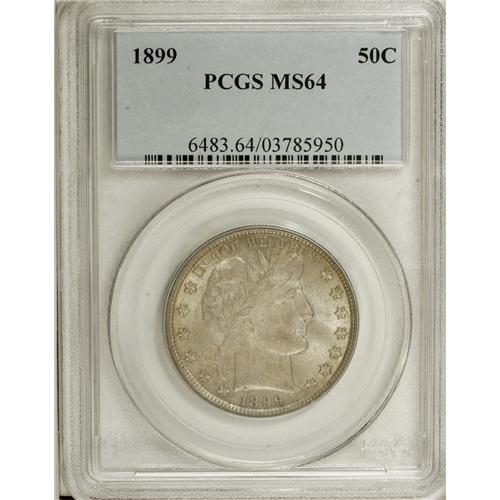 <B>1899 50C MS64 PCGS.</B></I> Pleasing luster radiates from light to medium intensity golden-gray surfaces, and an attentive strike left its mark on well defined design features. A few minor marks define the grade.<BR><BR><b>Shipping:</b> Coins & Currency (<a target="_blank" href="http://www.heritageauctions.com/common/shipping.php">view shipping information</a>)