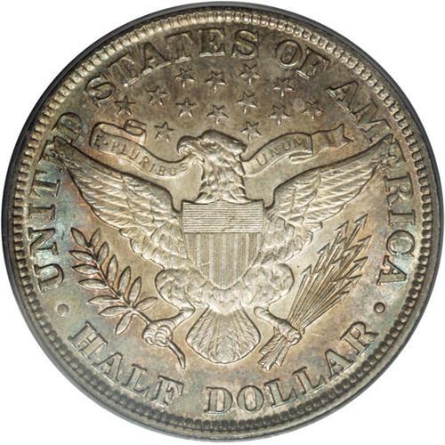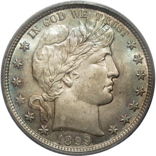 1899 50C MS65 PCGS. Rich aquamarine, crimson, and pink 1899[50C] MS65 PCGS.