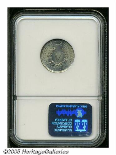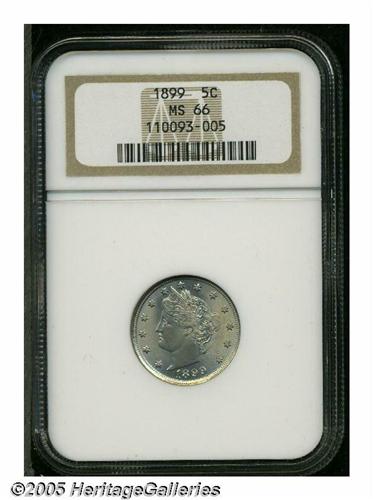 <B>1899<5C> MS66 NGC.</B></I> Well struck except for a couple of obverse stars and the left reverse ear of corn. The matte-like surfaces are fully lustrous and attractively toned in steel-gray and yellow-silver shadings. Both sides of the coin reveal expert preservation and the absence of even a single appreciable mark. Population: 38 in 66, 4 finer (6/05).