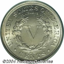 <table><tr><td><table><tr><td>1899 5C MS67 PCGS. An unusually pleasing example of this popular date in the Liberty nickel series. The striking details are complete on each side and the surfaces are nearly flawless. Untoned, the satiny mint luster shows a pebbly texture over much of the obverse from metal flow. A rare grade for a business strike Liberty nickel. Population: 1 in 67, 0 finer (2/04). <BR><BR><B>Important notice:</B> Heritage usually auctions material at the rate of 200-250 lots per hour. On some occasions eBay Live bid software or the Internet may not be able to keep up with the pace of the auction. We recommend placing a realistic absentee bid now as insurance to avoid disappointment. Occasionally the auctioneer may eliminate or reject an eBay Live bid, and the auctioneer may also reopen a lot after the close of the eBay live bidding (usually because we missed an audience bid), and may reject your bid even if it shows you as the winning bidder. By bidding via eBay Live, you agree that Heritage may award the lot to another bidder at its sole discretion under the circumstances described above or any other reasonable circumstances. Since eBay bids are not shown to us until we open the lot on the floor, we treat those bids just like floor bids. In most cases the floor responds before the eBay bid is presented to us, due to Internet lag time, so for consistency we have made it a policy that floor bids are always considered first over tie eBay live bids. Also please note that all Heritage lots purchased through eBay Live carry a 20% Buyer's Premium. Please make sure you read the Terms and Conditions before you bid. <BR><BR><B>IMPORTANT ANNOUNCEMENT ABOUT RESERVES:</B> Heritage now divulges all reserves on its web site 7 days before every auction. If you want to know whether the reserve on this lot has been met, and if not, what the reserve amount is, please visit this lot page on the HeritageCoin.com web site, or email: bid@HeritageGalleries.com </span></font></td></tr></table></td></tr></table>