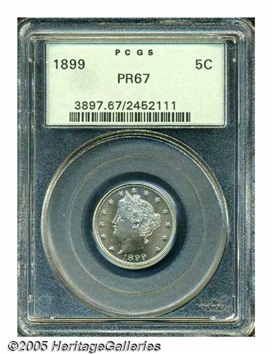 1899 5C PR67 PCGS. Flawlessly struck, with glitte