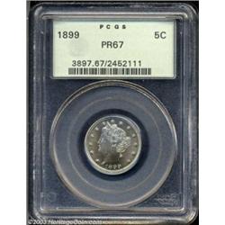 <table><tr><td><TABLE cellSpacing=0 cellPadding=0 width="100%" bgColor=#000000 border=0><TBODY> <TR><TD width="100%"><TABLE cellSpacing=1 cellPadding=3 width="100%" border=0><TBODY><TR><TD width="100%" bgColor=#79735c><FONT face=arial color=#ffffff size=3><B>Description</B> </FONT></TD></TR><TR><TD width="100%" bgColor=#ffffff><FONT face=arial size=2><B>1899 5C PR67 PCGS.</B></I> One of the finest examples which we have seen of this mintage, this Superb Gem is one of only six graded at PR67 by PCGS, with only one finer. It may be quite some time before another specimen of this quality is available through any avenue. Flawlessly struck, with absolutely pristine surfaces, olive-green and sea-green iridescent hues vie with one another in a contest which produces gorgeous effect. We would be very surprised if the fortunate winner of this marvelous Gem were to experience any trace of buyer's remorse. </FONT></TD></TR></TBODY></TABLE></TD></TR></TBODY></TABLE><BR><A name=PricesRealized></A><TABLE cellSpacing=0 cellPadding=0 width="100%" bgColor=#000000 border=0><TBODY><TR><TD width="100%"><TABLE cellSpacing=1 cellPadding=3 width="100%" border=0><TBODY><TR><TD width="100%" bgColor=#79735c><A name=PR><FONT face=arial color=#ffffff size=3><B>Previous Prices from Heritage Auctions</B> </FONT></A></TD></TR><TR><TD bgColor=#f6f6ed><TABLE cellSpacing=0 cellPadding=0 width="100%" border=1><TBODY><TR><TD align=middle width="33%"><B>Date</B></TD><TD align=middle width="33%"><B>Service</B></TD><TD align=middle width="33%"><B>Price</B></TD></TR><TR bgColor=whitesmoke><TD width="33%"><B>09/20/2003</B></TD><TD width="33%">PCGS</TD><TD width="33%">$2,530.00</TD></TR><TR bgColor=whitesmoke><TD width="33%"><B>06/07/2000</B></TD><TD width="33%">NGC</TD><TD width="33%">$948.75</TD></TR><TR bgColor=whitesmoke><TD width="33%"><B>11/01/2001</B></TD><TD width="33%">PCGS</TD><TD width="33%">$1,840.00</TD></TR></TBODY></TABLE></TD></TR><TR><TD bgColor=#ffffff><FONT face=arial size=1 ?>PLEASE NOTE: All prices realized reflect the final hammer price PLUS the buyer's premium in auctions that charge a buyer's premium. Each item has a notation at the top of the listing indicating whether that lot included a buyer's premium. Example: A item that sells with a final hammer price of $100 and a 20% buyer's premium will display with a price realized of $120. All information listed is intended to be as accurate as possible, but errors are possible. Please use this guide carefully and inform us of any inaccuracies. </FONT></TD></TR></TBODY></TABLE></TD></TR></TBODY></TABLE><BR><TABLE cellSpacing=0 cellPadding=0 width="100%" bgColor=#000000 border=0><TBODY><TR><TD width="100%"><TABLE cellSpacing=1 cellPadding=3 width="100%" border=0><TBODY><TR><TD width="100%" bgColor=#79735c colSpan=6><FONT face=arial color=#ffffff size=3><B>Price Guide*</B> </FONT></TD></TR><TR bgColor=#f6f6ed><TD align=middle><B>Grade</B> </TD><TD align=middle><B>Coin World<BR>(Trends)</B> </TD><TD align=middle><B>Numismedia<BR>Retail</B> </TD><TD align=middle><B>Numismedia<BR>Wholesale</B> </TD><TD align=middle><B>Coin<BR>Universe</B> </TD><TD align=middle><B>Heritage<BR>Value Index</B> </TD></TR><TR bgColor=#ffffff><TD align=middle>66</TD><TD align=right>---</TD><TD align=right>$880.00</TD><TD align=right>$675.00</TD><TD align=right>$825.00</TD><TD align=right>$528.75</TD></TR><TR style="FONT-WEIGHT: bold" bgColor=#cccfdd><TD align=middle>67</TD><TD align=right>---</TD><TD align=right>---</TD><TD align=right>$1,625.00</TD><TD align=right>$2,400.00</TD><TD align=right>$1,680.00</TD></TR><TR bgColor=#ffffff><TD align=middle>68</TD><TD align=right>---</TD><TD align=right>---</TD><TD align=right>---</TD><TD align=right>---</TD><TD align=right>---</TD></TR><TR bgColor=#ffffff><TD colSpan=6><FONT size=1>*All information listed is intended to be as accurate as possible, but errors are possible. No item may be returned or refused based on this information which is provided as a service to our customers. You should contact each pricing source directly to determine the accuracy of this information. </FONT></TD></TR></TBODY></TABLE></TD></TR></TBODY></TABLE><BR><TABLE cellSpacing=0 cellPadding=0 width="100%" bgColor=#000000 border=0><TBODY><TR><TD width="100%"><TABLE cellSpacing=1 cellPadding=3 width="100%" border=0><TBODY><TR><TD width="100%" bgColor=#79735c><FONT face=arial color=#ffffff size=3><B>Population Guide</B> </FONT></TD></TR><TR bgColor=#ffffff><TD align=middle><!-- Begin Output of Population Grid--><TABLE cellSpacing=0 cellPadding=0 width="100%" border=0><TBODY><TR><TD vAlign=center><TABLE cellSpacing=0 width="100%" border=1 cellsadding="3"><TBODY><TR><TD vAlign=center><TABLE cellSpacing=0 cellPadding=3 width="100%" border=1><TBODY><TR><TD vAlign=center align=middle bgColor=#f0f1e8 colSpan=2 <CENTER><FONT face=Arial size=2><B>PCGS Pop </B></FONT><CENTER></CENTER></TD><TD vAlign=center align=middle bgColor=#f0f1e8 colSpan=2><CENTER><FONT face=Arial size=2><B>NGC Pop</B></CENTER></FONT></TD></TR><TR><TD vAlign=center><FONT face=Arial size=2>(67)</FONT> </TD><TD vAlign=center align=right><FONT face=Arial size=2>7</FONT> </TD><TD vAlign=center><FONT face=Arial size=2>(67)</FONT> </TD><TD vAlign=center align=right><FONT face=Arial size=2>18</FONT> </TD></TR><TR><TD vAlign=center><FONT face=Arial size=2>(>67)</FONT> </TD><TD vAlign=center align=right><FONT face=Arial size=2>1</FONT> </TD><TD vAlign=center><FONT face=Arial size=2>(>67)</FONT> </TD><TD vAlign=center align=right><FONT face=Arial size=2>0</FONT> </TD></TR></TBODY></TABLE></TD></TR></TBODY></TABLE></TD></TR></TBODY></TABLE><!-- End Output of Population Grid--></TD></TR></TBODY></TABLE></TD></TR></TBODY></TABLE><BR><TABLE cellSpacing=0 cellPadding=0 width="100%" bgColor=#000000 border=0><TBODY><TR> Important notice: Heritage usually auctions material at the rate of 200-250 lots per hour. On some occasions eBay Live bid software or the Internet may not be able to keep up with the pace of the auction. We 