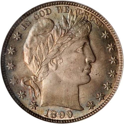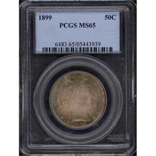 <b>1899 Barber Half Dollar. PCGS graded MS65.</b> Fresh toned colors develop across the fields of this handsome Gem mint state coin. Struck with almost scientific precision on the devices, it comes with all things positive and none of the negatives of a lesser grade Barber half <b>(PCGS # 6483)</b>