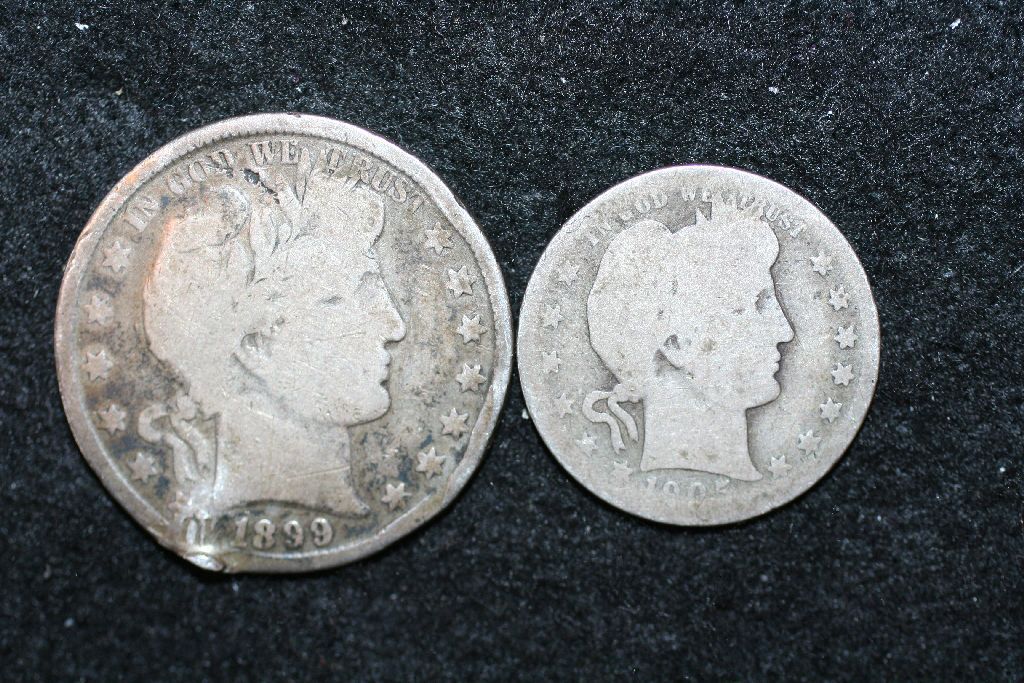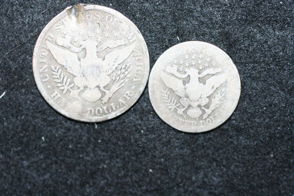 1899 Barber Half Dollar & 1905 Barber Quarter; Low Grade; Lot of 2