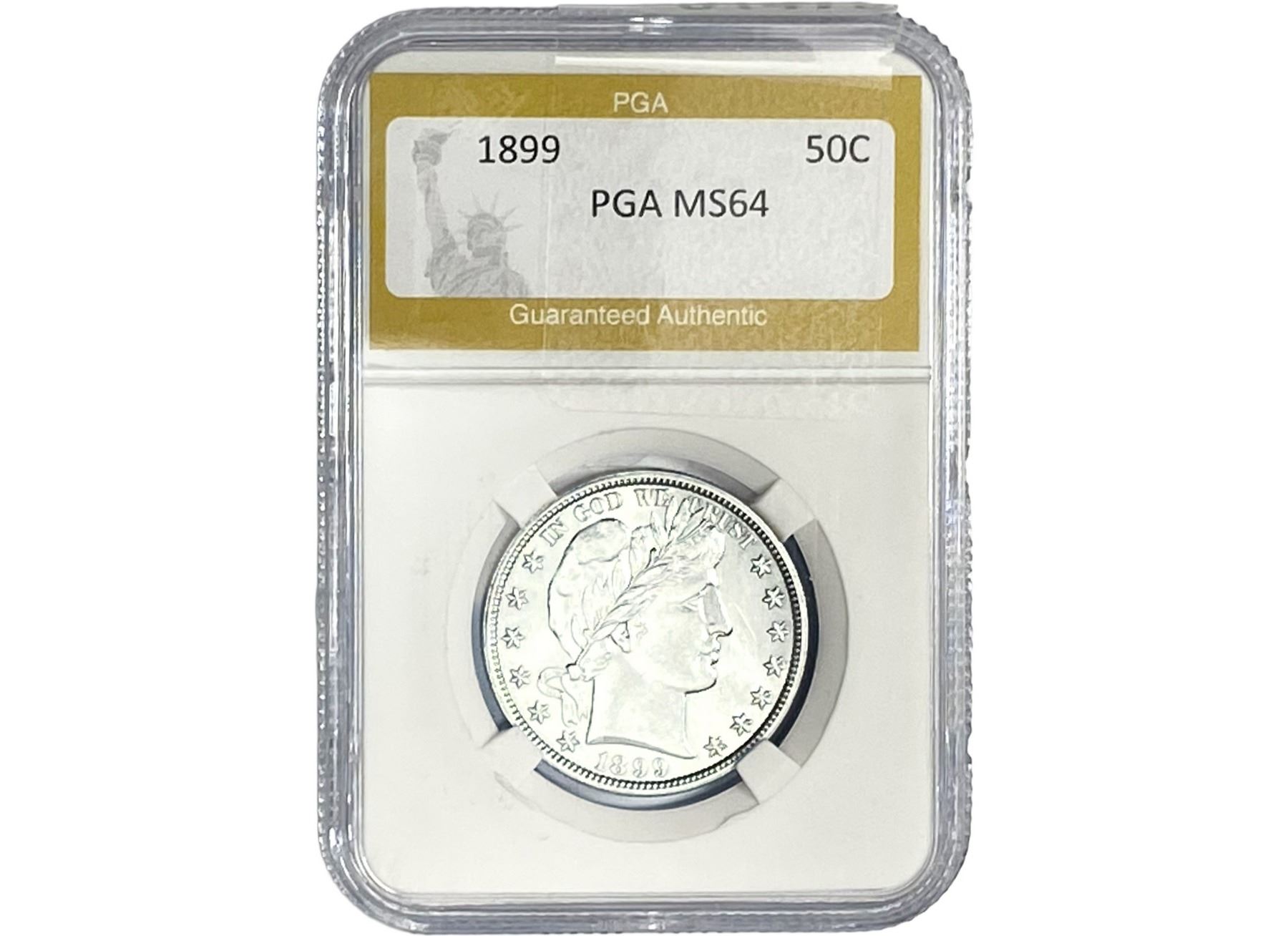 COINS AND CURRENCY LISTED IN GSA’S CATALOG AS GRADED AND ENCAPSULATED BY PCGS, NGC, ANACS, ICG, PCGS CURRENCY, PMG, PCGS BANKNOTE GRADING, CMC OR ANY OTHER THIRD-PARTY GRADING SERVICE ARE LIKEWISE SOLD “AS-IS” EXCEPT AS EXPRESSLY SET FORTH HEREIN. ALL THIRD-PARTY GRADING SERVICE GUARANTEES, INCLUDING AUTHENTICITY, ARE THE SOLE RESPONSIBILITY OF THE THIRD-PARTY GRADING SERVICE AND NOT WARRANTIES OR GUARANTEES OF GSA. BIDDERS SHOULD CONTACT THESE THIRD-PARTY GRADING SERVICES DIRECTLY WITH RESPECT TO ANY CLAIMS OR QUESTIONS THEY MAY HAVE CONCERNING THEIR GUARANTEES AND WARRANTIES. BIDDERS ACKNOWLEDGE AND AGREE THAT AUCTIONEER IS NOT BOUND BY OR LIABLE FOR ANY OPINION OR CERTIFICATION BY ANY THIRD-PARTY GRADING SERVICE. REMOVAL OF A PRODUCT FROM ITS PROTECTIVE CASING OR HOLDER OR ALTERATION OF ANY COIN HOLDER WAIVES ALL RIGHTS CONCERNING THE PRODUCT CONTAINED THEREIN.