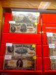 1899 Black eagle silver certificate, 1907 $5 Woodchopper legal tender, 1917 $2 Red Seal legal tender, $20 large gold certificate