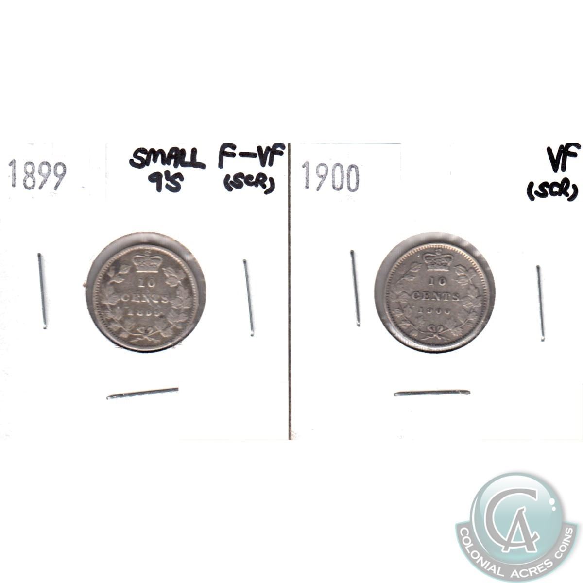 1899 Canada 10-cent Small 9's F-VF (scratched) & 1900 10-cent VF (scratched). 2pcs