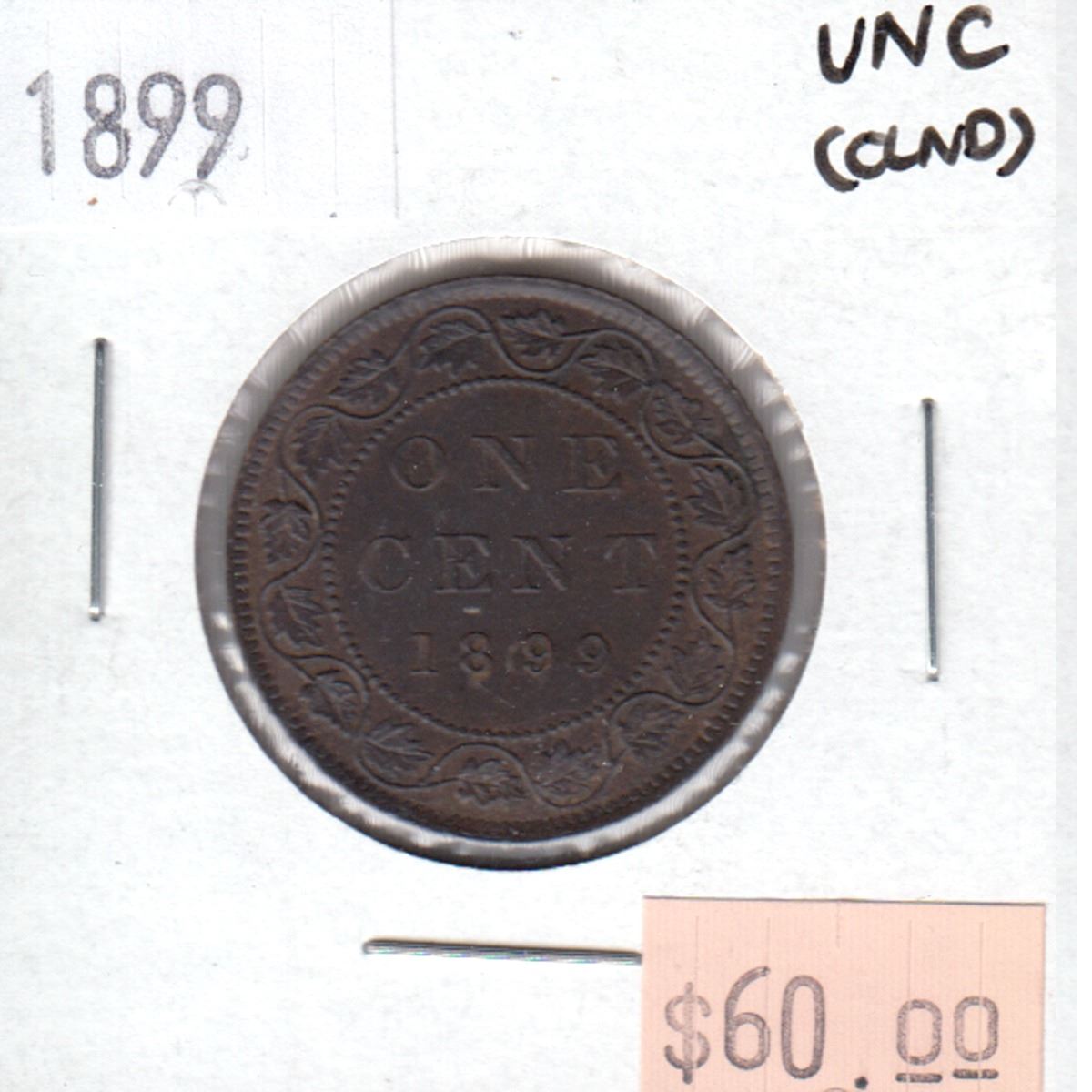 1899 Canada Large 1-cent Uncirculated (MS-60) cleaned.
