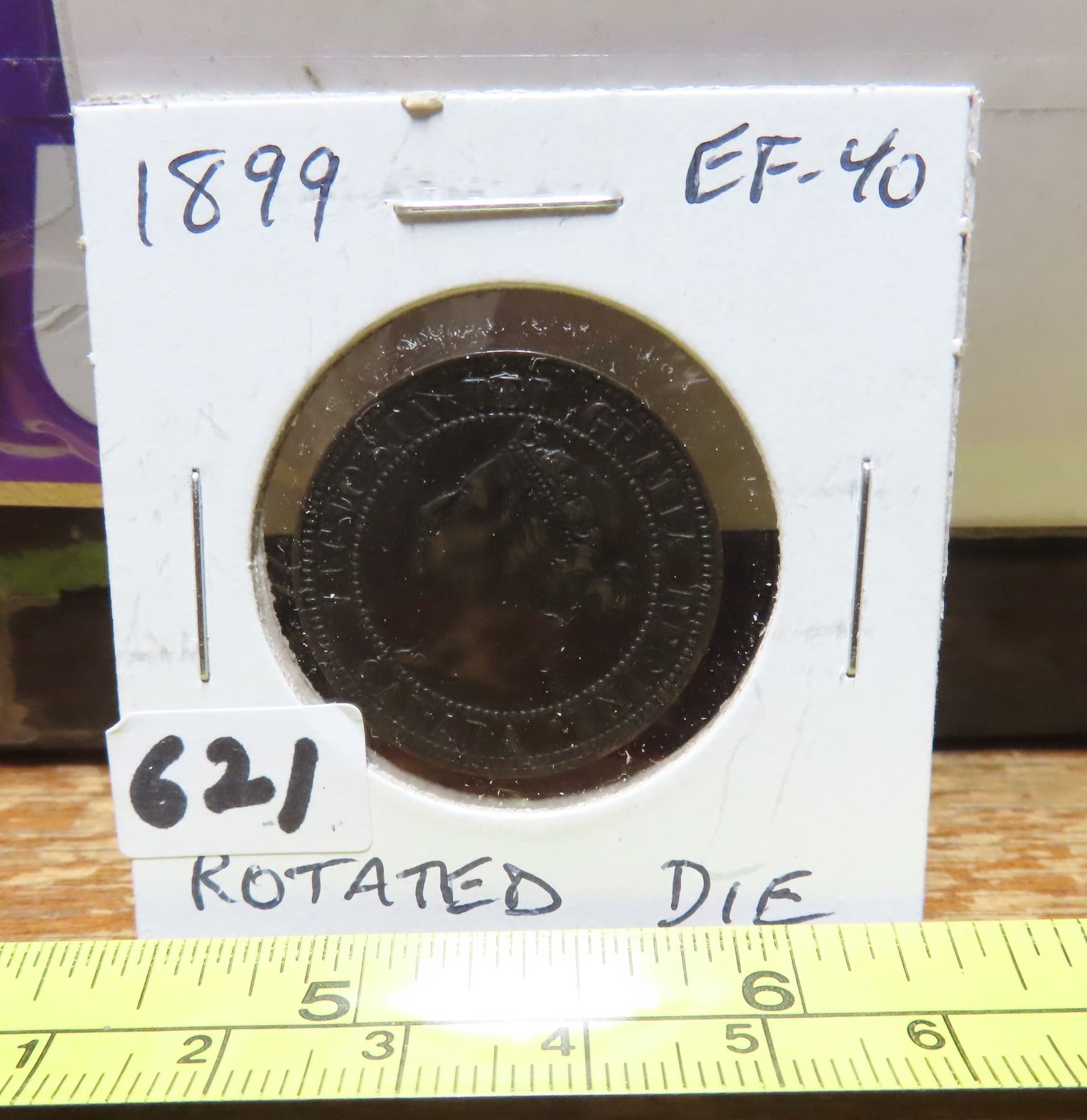 1899 Canadian Victorian Large Cent. EF-40 with Rotated Die.