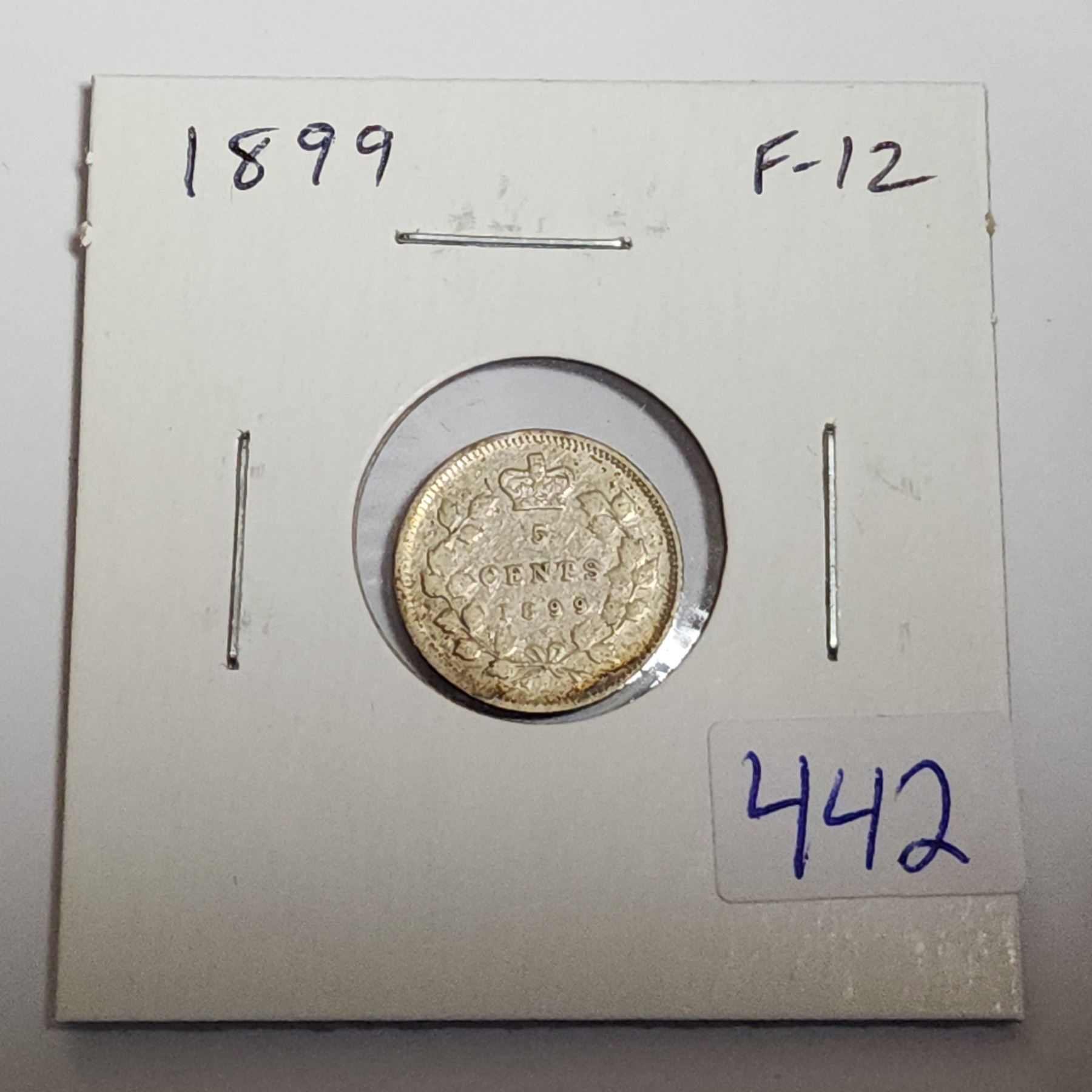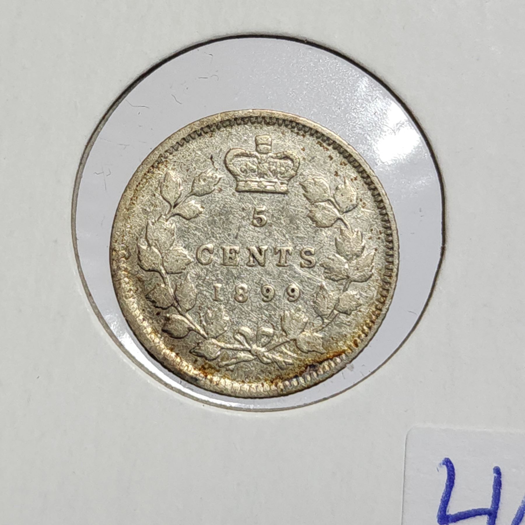 1899 Canadian Victorian Silver 5 Cents. F-12.