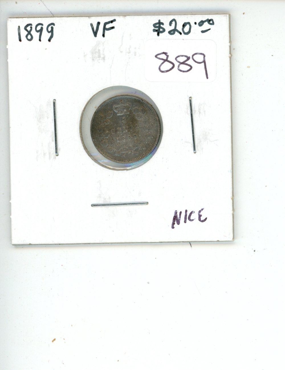 1899 Canadian Victorian Silver 5 Cents. VF-20. Nice.