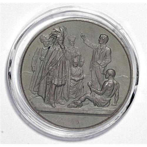 <B>1899 Church Missionary Society Centenary Medal MS64 Uncertified.</B></I> Silver. 38mm. Plain edge. Dies by Allan Wyon. A matte finish piece with undisturbed, minutely granular surfaces. Obverse: missionary pontificates to an attentive mixed ethnic audience. Inscription reverse. The as-issued round cardboard holder is included, and is in Good condition with noticeable paper tears.<BR><I>From The Troy Wiseman Collection.</B></I>