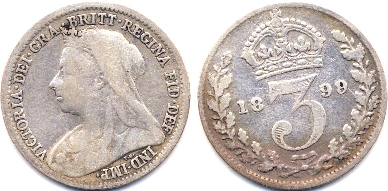 1899 GREAT BRITIAN SILVER 3 PENCE-CIRC