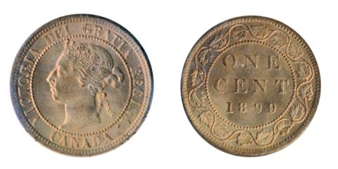 1899. ICCS Mint State-65. Red. 95% Gem luster.