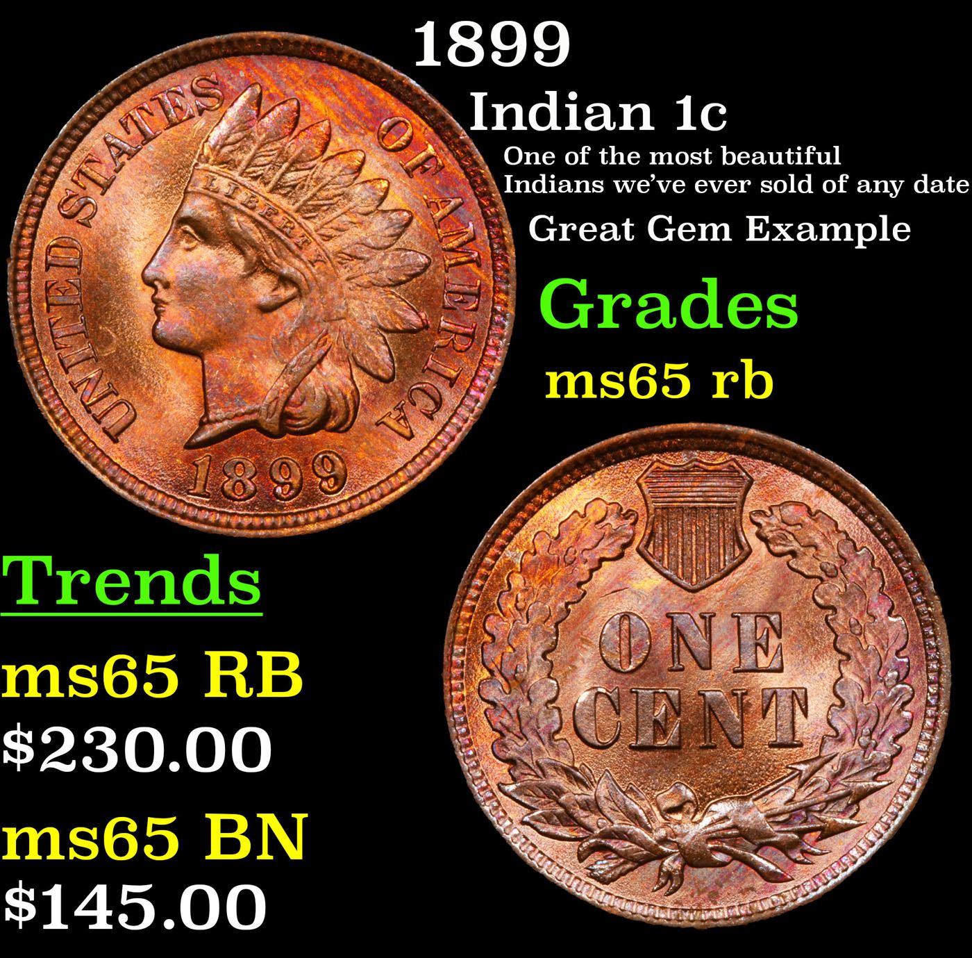 1899 Indian Cent 1c Grades GEM Unc RB.