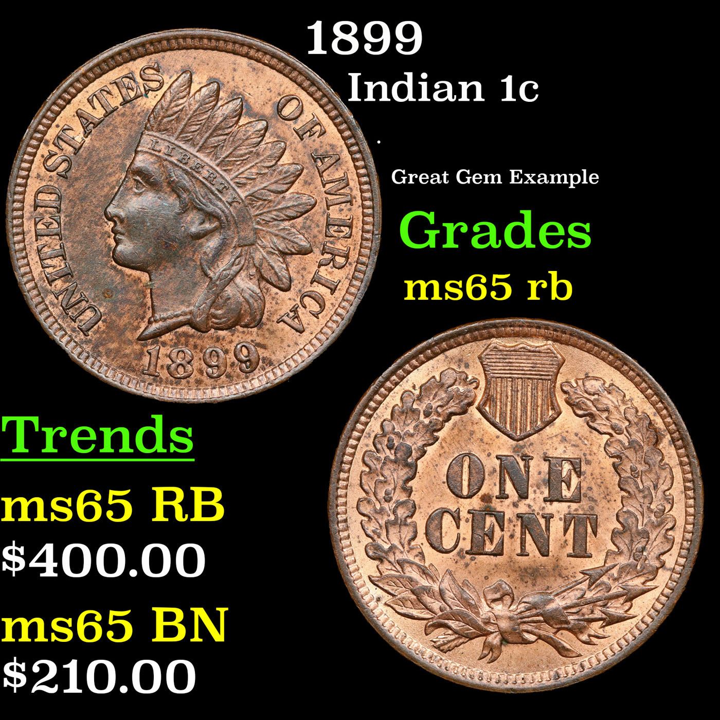 1899 Indian Cent 1c Grades GEM Unc RB.