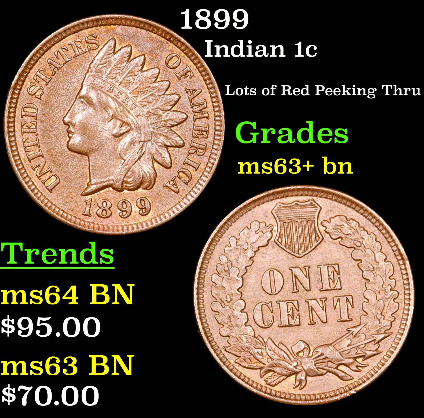 1899 Lots of Red Peeking Thru . Indian Cent 1c Grades Select+ Unc BN.